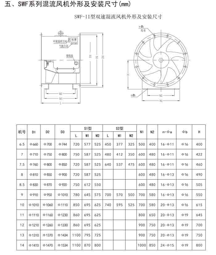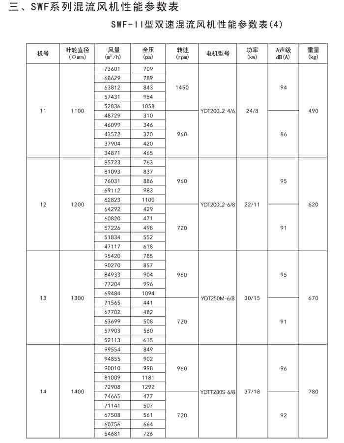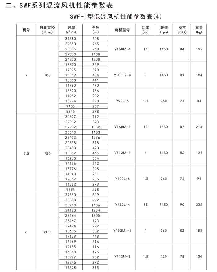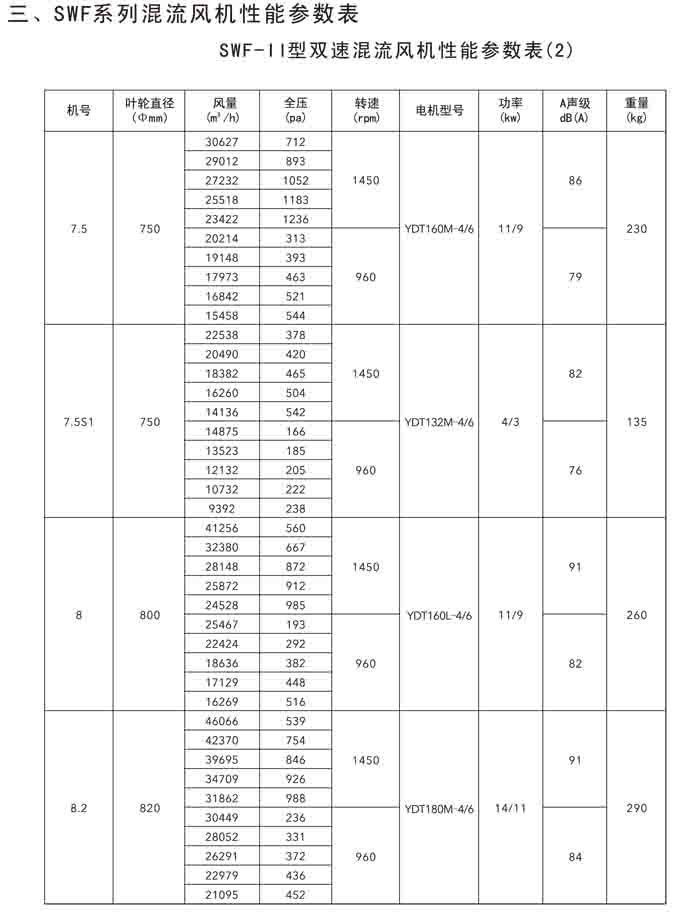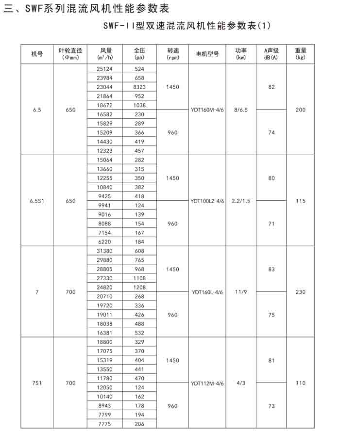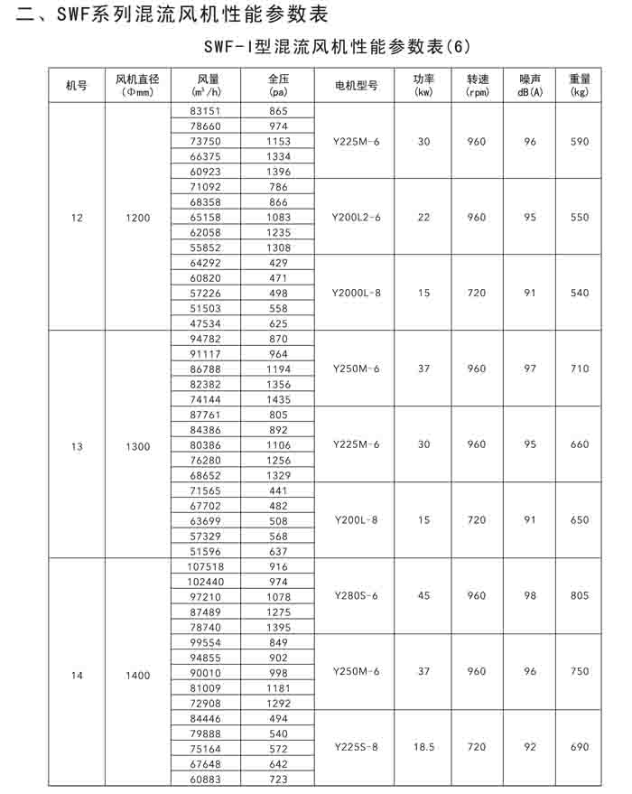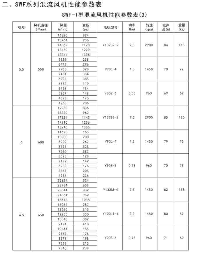 二、SWF(HLF、GXF)-I、II、H 系列高效混流風機